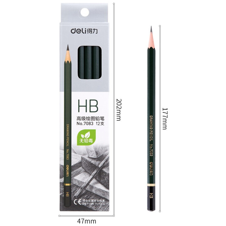 得力/deli 7083 書(shū)寫(xiě)用筆類(lèi)用具 HB鉛筆學(xué)生鉛筆安全石墨鉛筆12支/盒