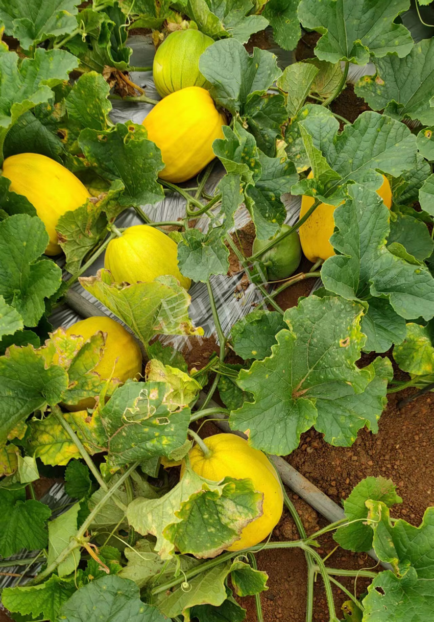 二是,我去年小面積試種了不同公司的多個甜瓜品種,其中“金美2號”表現(xiàn)最優(yōu)——抗枯萎病能力強(qiáng),在連作地不死棵;在多雨的情況下,不裂瓜;果型好,高圓形,果皮金黃;肉質(zhì)脆、甜度高,口感爽。雖然外形與丑八怪甜瓜有點相似,但“金美2號”的品質(zhì)和產(chǎn)量明顯搶優(yōu)。