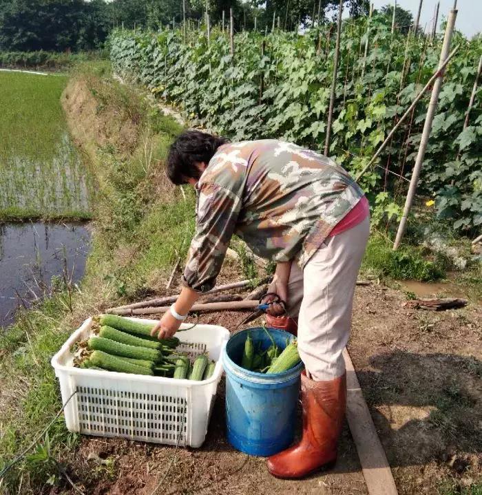 △ 劉健平夫婦露地栽培的“優(yōu)比1號(hào)”絲瓜